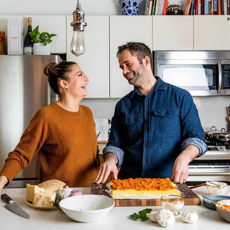Great Ones is a celebration of humans we admire — and an exploration of why they cook, not just how. In celebration of Valentine’s Day, we’re featuring three couples who express their love through cooking. Angie Rito and Scott Tacinelli met while working in the same restaurant in 2008 and married (in Florence, no less) seven years later. They are now the co-owners and chefs behind Don Angie, an acclaimed Italian-American restaurant in New York’s West Village. At their apartment in Brooklyn, Scott and Angie showed us how to cook their most popular dish: lasagna for two.