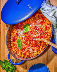 A good Dutch oven lasts forever; a Great Jones Dutch oven is your best friend forever. Our 6.75-quart enameled cast-iron Dutchess moves gracefully from stove to oven to table centerpiece.